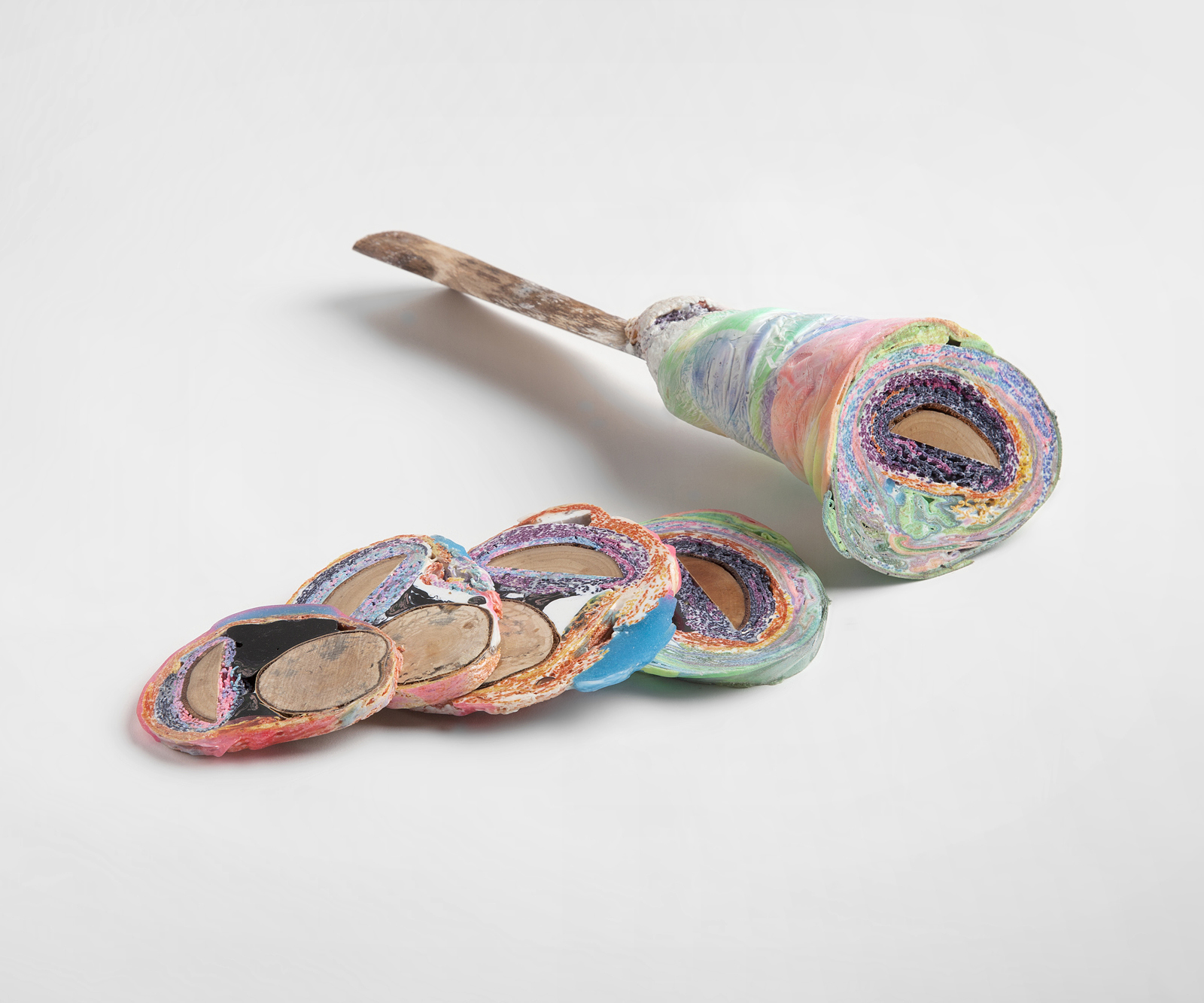 With this philosophy, they have made many unusual products such as coasters formed from a blend of melted colourful resin. The outcome was later used as inspiration for a carpet collaboration with Tai Ping Carpets.